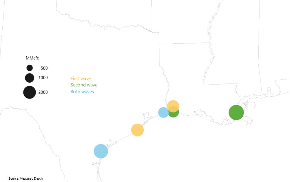 Since 2017, six new large-scale1 LNG facilities have come online, five of which are located between Corpus Christi and Lake Charles.