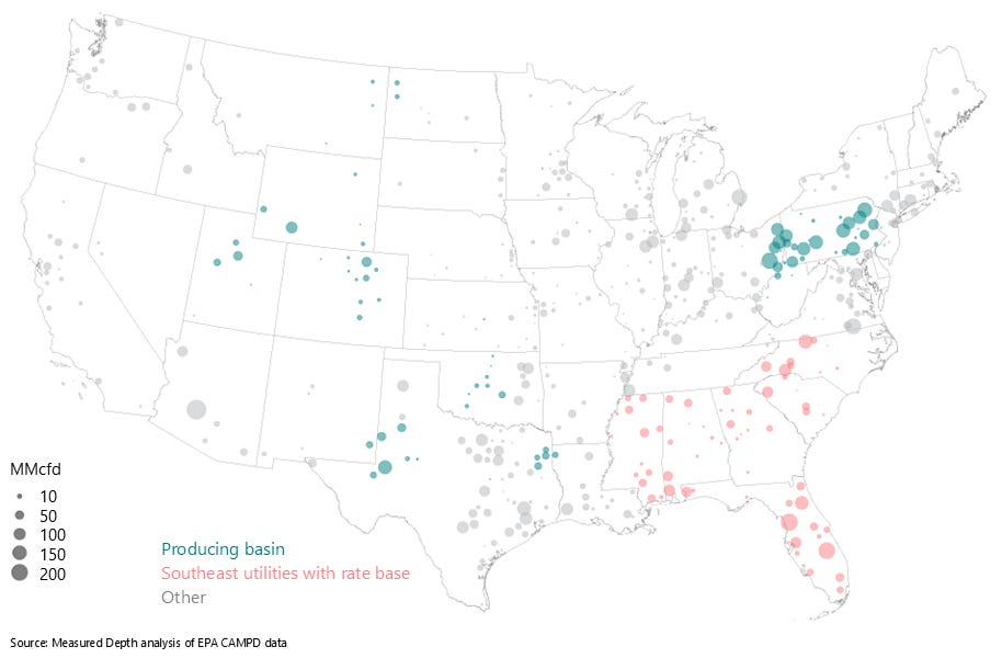 Now, the pattern is shifting: LNG developers contracting further upstream, and power generators outside the Southeast beginning to backstop expensive greenfield interstate transmission.