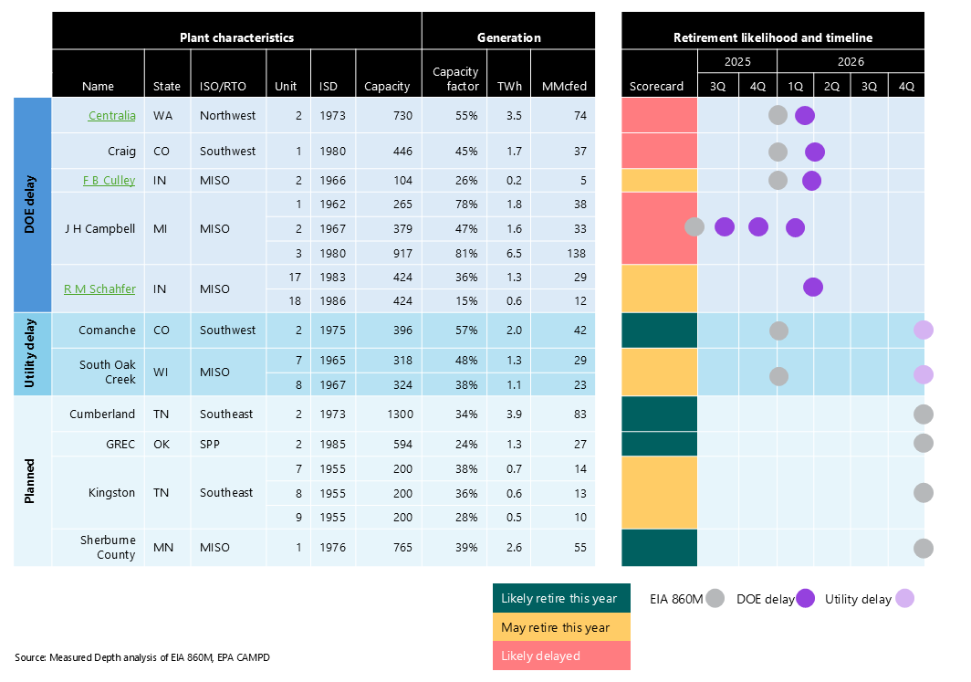 Centralia (WA): TransAlta recently announced 2028 gas conversion rather than retire it, and the retirement may wait until that happens, currently targeting 2028.
