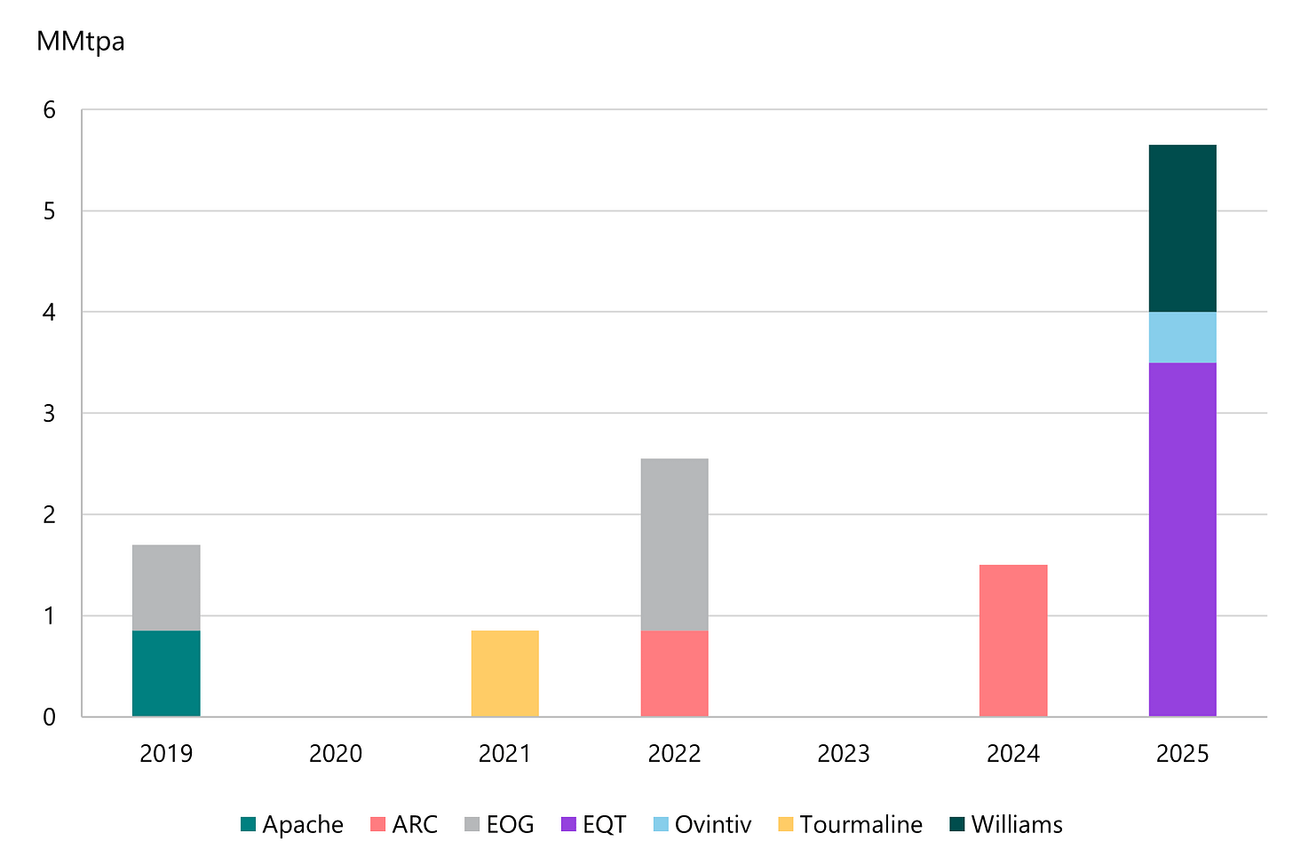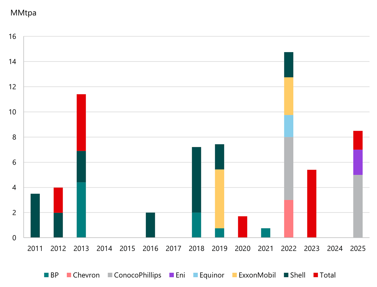 Figure 3 | Post-FID portfolio player North American LNG contracts by year