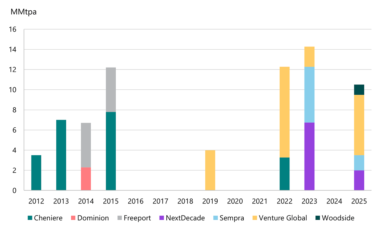 Inasmuch as end-users are offtakers from 2025 North American LNG FIDs, their commitments were weighted toward the low-cost provider, Venture Global. This trend points to increasing price sensitivity among buyers and bearishness regarding the potential for sustained high global gas prices.